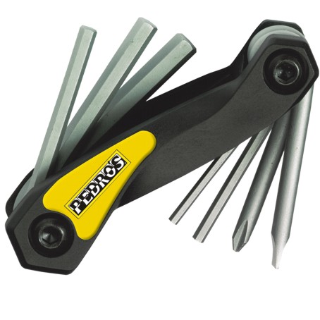 FOLDING HEX SET SCREW Kieszonkowy Zestaw Kluczy Pedros Kieszonkowy zestaw 7 najpotrzebniejszych kluczy rowerowych. Obudowa wykonana z lekkiego i wytrzymałego kompozytu. Ergonomiczny kształt pozwala na łatwy dostęp do narzędzi. Wbudowany ogranicznik pozwala ustawić klucz w najwygodniejszej pozycji. Wszystkie klucze wykonane z najwyższej jakości, hartowanej stali. Zestaw zawiera imbusy: 2.5, 3, 4, 5 i 6 oraz wkrętaki + i -.
