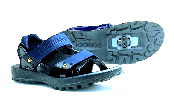 Sandał rowerowy SPD. Doskonały do jazdy po wyścigu lub do jazdy podczas upalnej pogody. Wygodna gumowa wewnętrzna podeszwa i wyściełane oparcie pięty.