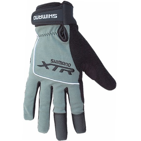 Performance XTR Rękawiczki Shimano Rękawiczki z pełnymi palcami w kolorystyce charakterystycznej dla linii Performance XTR. Kevlar w palcu środkowym i wskazującym, spód wykonany z gąbki i materiału absorbującego wstrząsy.