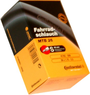 MTB 26 S-42 Dętka Continental Uniwersalna dętka MTB Continentala z wentylem Presta. Ten model charakteryzuje się relatywnie niską wagą przy zachowanej wytrzymałości na przebicie.