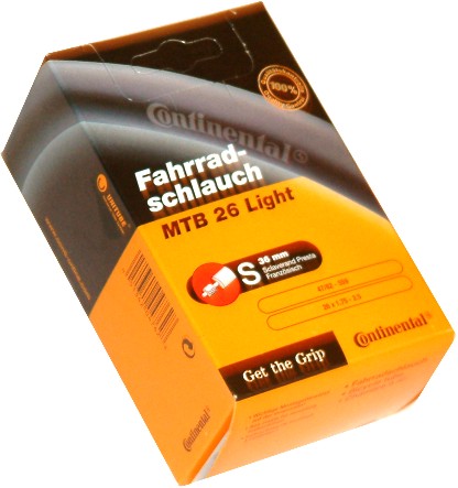 MTB 26 Light Dętka Continental Uniwersalna, lekka dętka MTB Continentala z wentylem Presta. Ta wersja charakteryzuje się relatywnie niską wagą przy zachowanej wytrzymałości na przebicie.