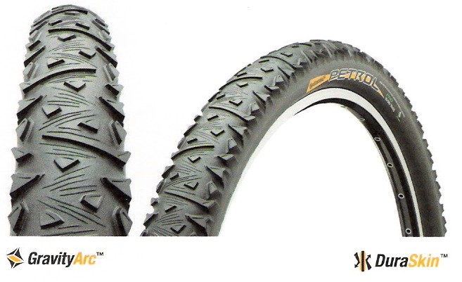 Petrol ProTection 26x2.5 - Opona Continental Szerokie opony nie muszą być ciężkie. Petrol radzi sobie z mniejszą głębokością bieżnika bez kłopotów na suchych i skalistych dróżkach. Jak na tą szerokość, jest bardzo lekka i przyśpieszy twój freeridowy rower jak żadna inna opona. Boczne wypusty są wzorowane na wzorze bieżnika GravityArc , aby nie tracić prędkości na zakrętach. Wersja zwijana z wzmocnioną powierzchnią boczną DuraSkin.