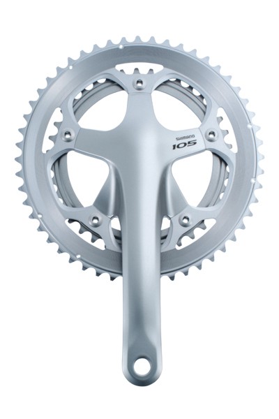 Shimano 105 FC-5600 [2006] Mechanizm Korbowy Nowy, dwurzędowy szosowy mechanizm korbowy w grupie Shimano 105. Wykonany w technologii Hollowtech II zapewnia optymalną równowagę pomiędzy wagą i sztywnością zespołu.