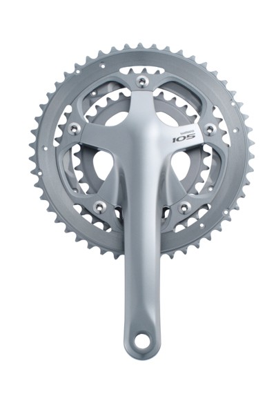 Shimano 105 FC-5603 [2006] Mechanizm Korbowy Nowy, trzyrzędowy szosowy mechanizm korbowy w grupie Shimano 105. Wykonany w technologii Hollowtech II zapewnia optymalną równowagę pomiędzy wagą i sztywnością zespołu.