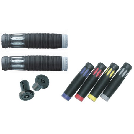 Mushy Chwyty Kierownicy Tioga Bardzo wygodne chwyty wykonane z gumy kraton. Rewelacyjne zarówno dla wytrawnego maratończyka jak i dla turysty. W komplecie plastikowe końcówki ze śrubą zabezpieczające przed zsunięciem się chwytów. Dostępne kolory: czarno-szare, czarno-czerwone, czarno-niebieskie, czarno-żółte.