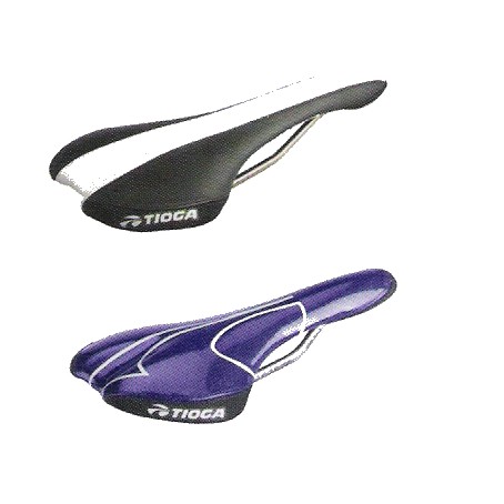 MC Lite S Siodło Tioga Siodło MC Lite S wykonane na prętach chromowo-molibdenowych. Występuje w dwóch wersjach: czarna skóra z wstawkami kevlarowymi i białym pasem antypoślizgowym lub niebieski syntetyk.