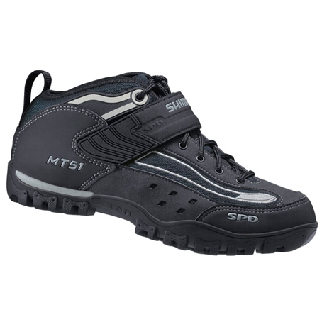 Buty SH-MT51 Uniwersalne buty przeznaczone do większości rodzajów jazdy. Buty o podwyższonej, trekkingowej konstrukcji, zapewniającej doskonałą stabilność kostki i komfort podczas chodzenia. Środkowa część podeszwy - EVA i nowa gumowa podeszwa podnoszą wydajność pedałowania. Buty są doskonałą propozycją zarówno do jazdy szosowej jak i terenowej.