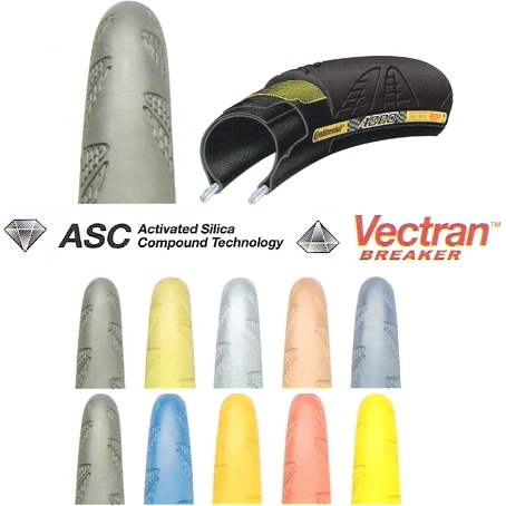 Grand Prix 4000 - Opona Continental Nowy materiał Vectran po raz pierwszy zastosowany w oponach. Vectran to wielowłóknisty termoplastyczny materiał bardziej odporny na przebicia niż zazwyczaj stosowany Aramid, pięć razy mocniejszy od stali i lżejszy niż podwójna warstwa nylonu. Jest bardzo trwały i zachowuje swoją wytrzymałość w mokrych warunkach. Po raz pierwszy zastosowany przez NASA w poduszkach powietrznych sond kosmicznych lądujących na Marsie, udoskonalony składnik krzemianowy (ASCä) bezpieczniejsze prowadzenie w połączeniu z małym oporem toczenia i długą trwałością.