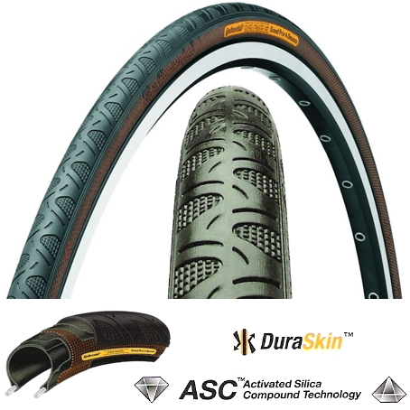 Grand Prix 4-Seasons 700x23 Opona Szosowa Continental Najlepsze połączenie prędkości, niskiej wagi i działania w deszczowej pogodzie łącznie z doskonałą ochroną przed przebiciem i ochroną boków. Czarny składnik bieżnika MaxGripSilica specjalnie opracowany dla przyczepności w mokrych warunkach, niskich temperatur i wydłużenia żywotności bieżnika.