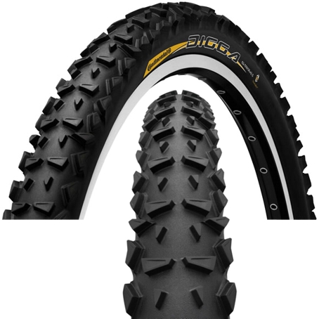 Digga 26x2.5 Opona Continental Wypusty o ostrych krawędziach zapewniają stabilność zarówno podczas szybkiej jazdy jak i w trakcie hamowania, specjalnie wzmocniony oplot pomaga pokonywać korzenie, skały i kamienie. Wzmocniony oplot chroni przed przecięciami i przyszczypnięciami. Dzięki dużej szerokości i wytrzymałemu bieżnikowi Digga nadaje się do dzikiego freeridu i downhillu
