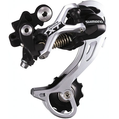 XT RD-M772 SHADOW TOP NORMAL Przerzutka Tylna Shimano Przerzutka tylna Deore XT wykonana w technologii SHADOW, zapewnia szybką i precyzyjną zmianę przełożeń przy kompaktowej i lekkiej konstrukcji. Bardzo wąski profil zmniejsza ryzyko uszkodzenia przerzutki przez naturalne przeszkody terenowe. Zastosowanie pojedyńczej sprężyny zapobiega uderzaniu łańcucha o ramę roweru przez co napęd pracuje ciszej. Nowy system prowadzenia linki przerzutki wraz z nowymi dźwigniami przerzutki gwarantuje bardziej precyzyjną i szybszą pracę układu. Konstrukcja wykonana z aluminium prowadzi do zmniejszenia wagi przy zachowaniu wytrzymałości i sztywności. Kompatybilna z napędami 7, 8 i 9-rzędowymi. Zalecana do współpracy z dźwigniami RapidFire.