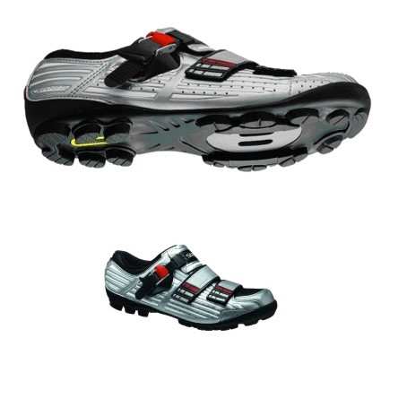 Buty SH-M085 Trwała i lekka podeszwa gumowa zapewnia doskonałą przyczepność i wygodę chodzenia. Nylonowa płytka wzmacniana włóknem szklanym zwiększa stabilność rowerzysty. Obszar odpornej na rozciąganie siatki nylonowej zapewnia dobre dopasowanie i wentylację. Precyzyjnie regulowana sprzączka i dwa przesunięte paski dobrze mocują stopę i pozwalają na dokonywanie dokłądnych ustawień. Przesunięte przylepce pozwalają na uniknięcie ucisku.